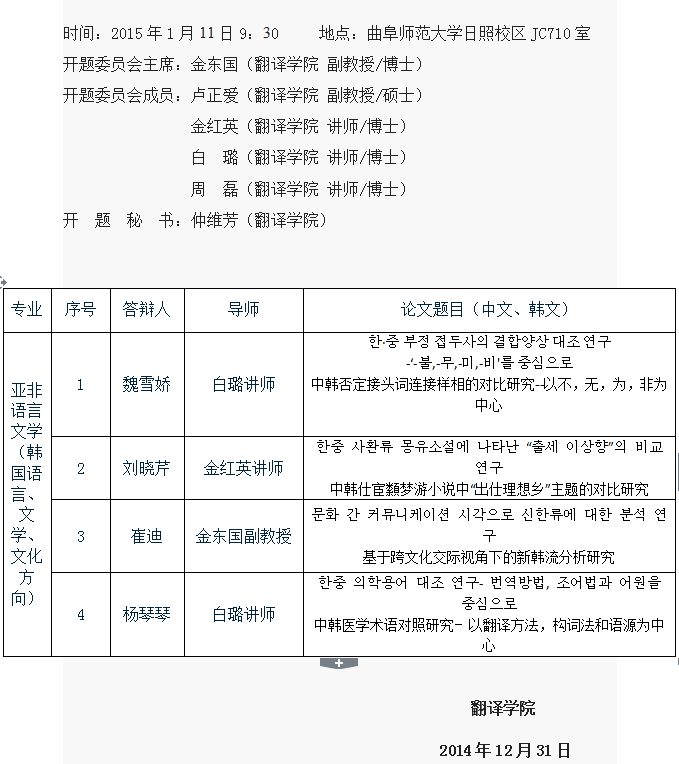 篮球直播吧 2015届全日制研究生学位论文答辩安排