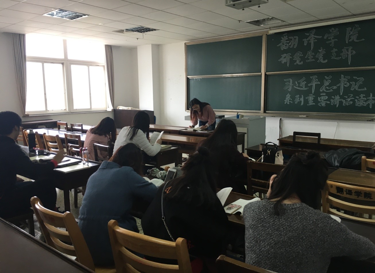 研究生党支部在教学楼C712召开“新进党员见面会暨习近平总书记系列重要讲话读本第九、十章学习会”。支部书记迟阳、新进党员王文妍、贺龙飞、李欣洁,以及研究生党员李雪、邓亚楠等参加了本次学习会,会议由迟阳主持。