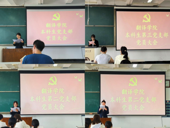 主持人报告参会情况后宣布大会开始,张昕琦等14名发展对象逐一宣读入党志愿书,入党介绍人依次发表考察意见,支部委员会同步报告发展对象综合政审结果。正式党员充分发表意见后,经无记名投票表决,14名发展对象全票通过,一致被接收为中共预备党员。各党支部书记强调,新预备党员需以党员要求校准自身言行,依托“学习强国”等平台深化理论学习,同时发挥外语专业优势,在国际交流、志愿服务中践行党员使命,以实际行动在学风建设、社群服务、公益实践中树立榜样,展现新时代青年党员的责任与担当。