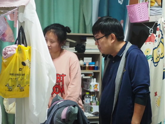 2020级辅导员王峰深入学生宿舍开展安全隐患排查工作。