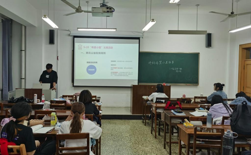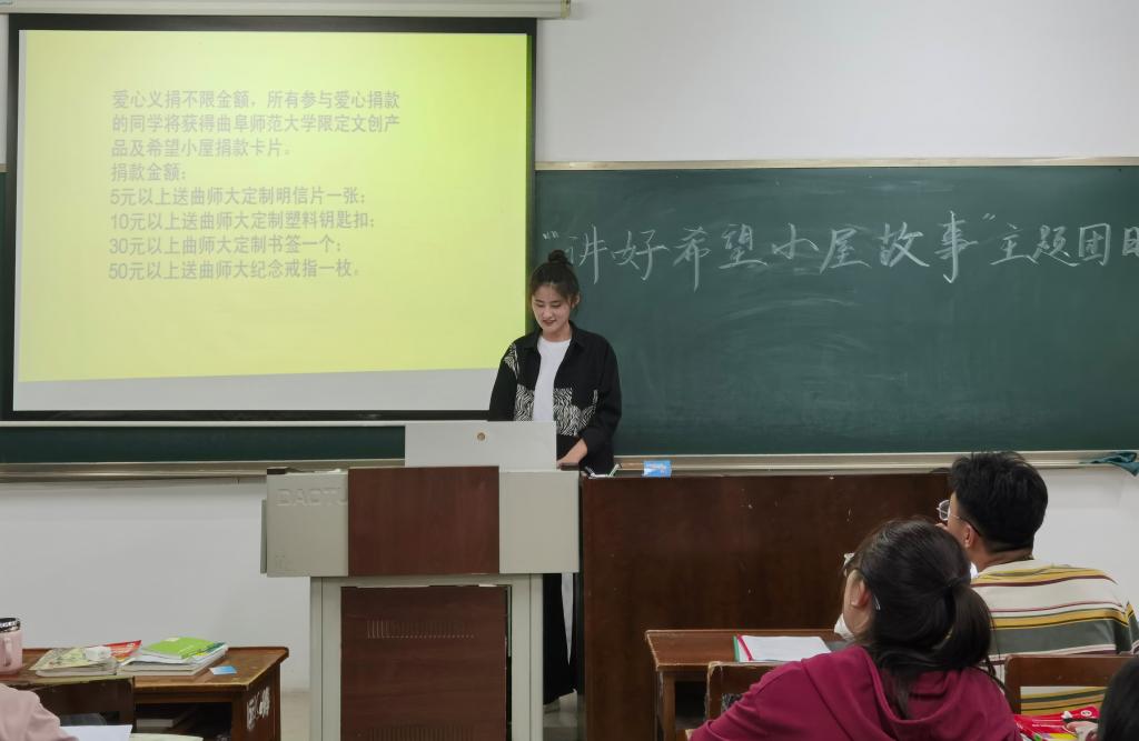 活动伊始,各班团支书通过播放PPT与宣传片的形式为同学们讲解了“希望小屋”项目发起的背景与初衷。“希望小屋”项目致力于解决贫困家庭儿童成长、学习中遇到的问题,依托其原有住房进行规划,力求为贫困家庭儿童提供一个良好的生活环境。介绍过程中,同学们认真听讲,对“希望小屋”爱心项目有了更加详细的了解。接着,团支书宣读《曲阜师范大学“希望小屋”爱心捐赠倡议书》,介绍爱心捐赠流程,呼吁同学们积极参与“希望小屋”爱心义卖和募捐活动,为“希望小屋”的建设贡献一份力量。活动最后,团支书组织同学们发起相关讨论,就同学们对“希望小屋”项目存在的疑问进行了一一解答。至此,本次主题团日活动顺利结束。