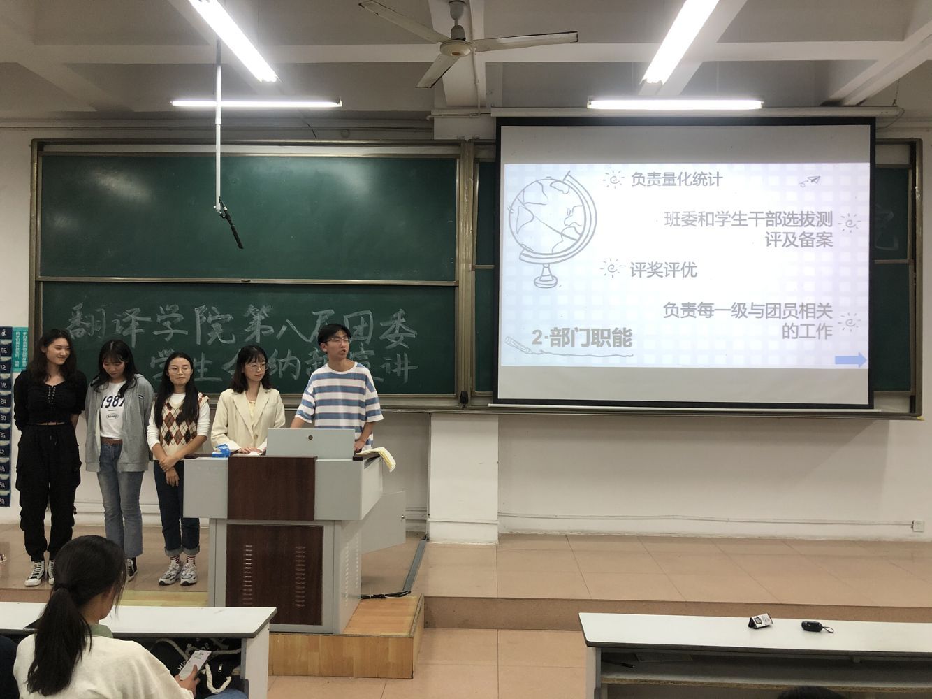 第八届团委学生会纳新宣讲于A105、A106教室举行。第八届团委学生会主席团成员、各部门代表和2020级全体学生共同参加了本次宣讲。
