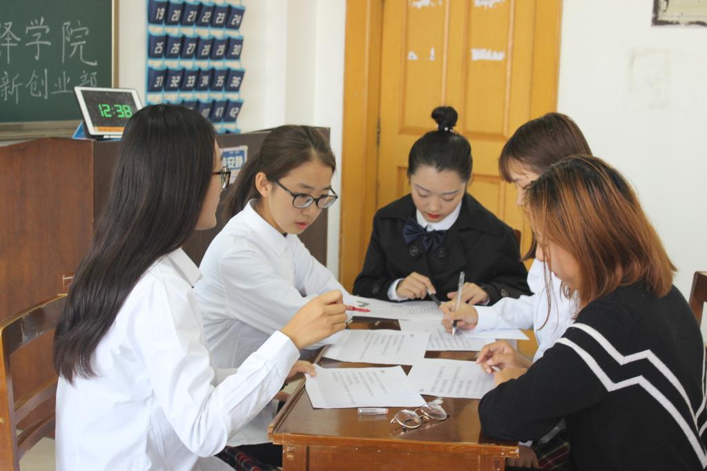 最后一个环节为无领导小组讨论,选手们分为两组在十五分钟内就一个话题自由讨论给出解决方案,并推选代表陈述观点。在这一个环节中每个小组的成员都勇于提出自己的观点,综合不同观点得出了统一的解决方案。评委根据选手表现打分,最终邹嘉昕同学表现优异,获得了一等奖。至此,本次比赛圆满结束。