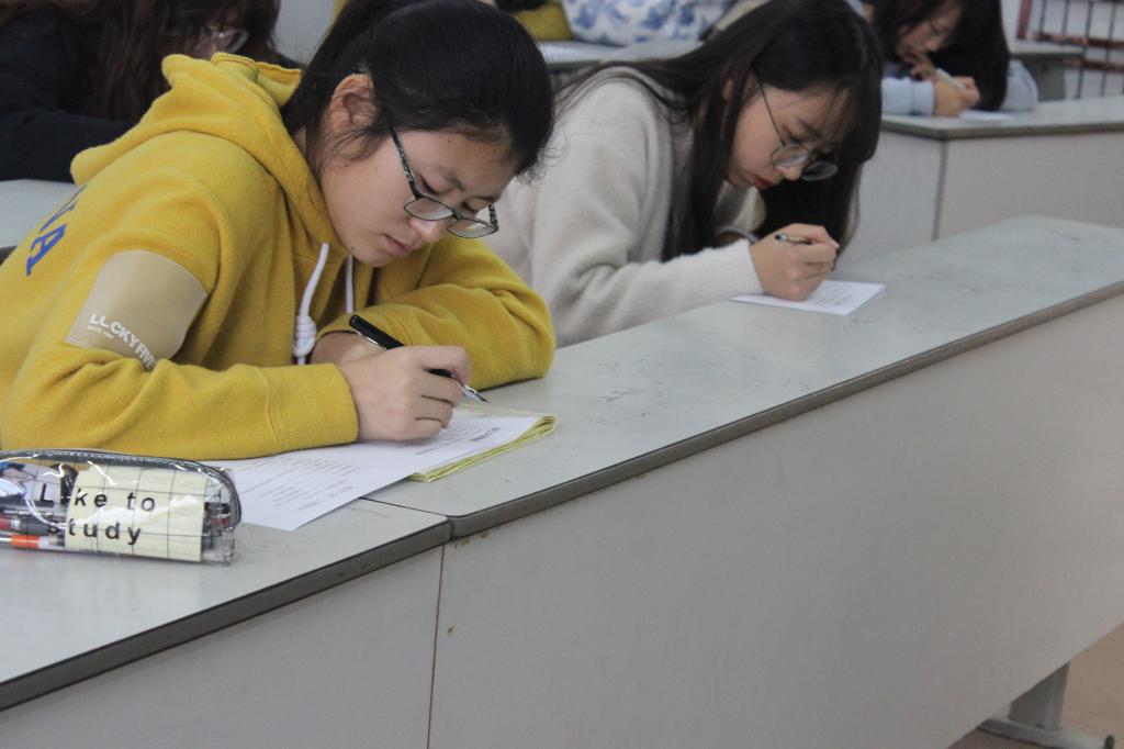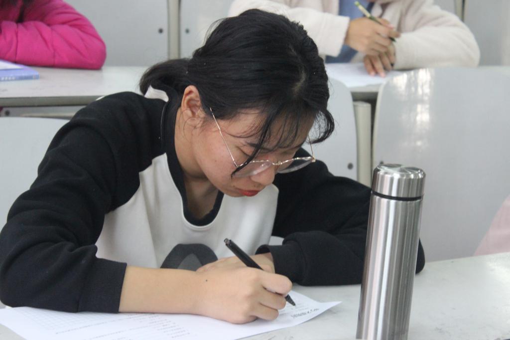 此次文化达人挑战杯初赛采用笔试的形式对参赛选手进行初步选拔,考试内容覆盖范围广泛,题目涉及节日风俗、戏曲、饮食文化等方面。此次笔试包括选择题、填空题、名句默写题以及鉴赏题四大题型,考试总时长为90分钟。答题时各位选手沉着冷静,奋笔疾书。经过30分钟的紧张答题,同学们陆续完成答卷。经过组委会工作人员仔细批阅,四位同学成绩优异脱颖而出,成功进入复赛。她们是王文慧、高瑞遥、唐成芳及李孜康。至此,第四届文化达人挑战杯初赛圆满结束。