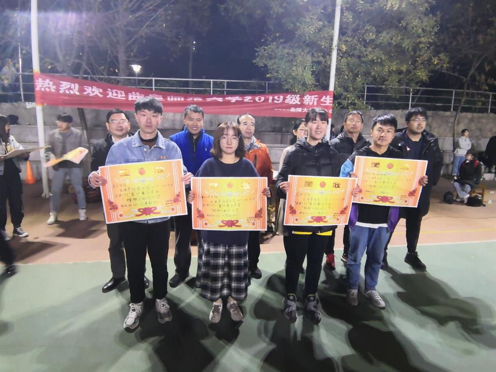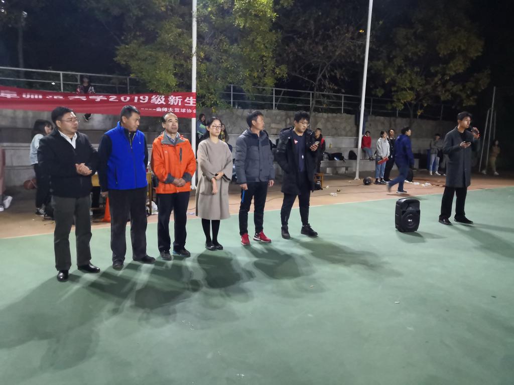 10月26日21:30,曲阜师范大学“迎新杯”篮球赛决赛暨闭幕式于东操场灯光球场举行。体育教学部王哲、毕思泉老师出席了闭幕式。来自各篮球直播吧