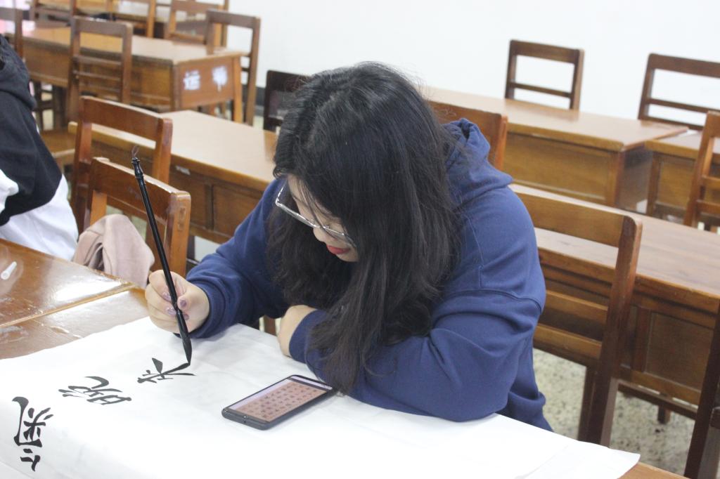 活动伊始,参赛者们自信满满,各自有序就座,等待比赛开始。按照组织方规定内容,参赛者须根据所报类目,相应完成硬笔作品、毛笔作品以及粉笔作品。此外,参赛者需要自备钢笔与毛笔,入场后统一发放比赛用纸,作品力求书写规范、字体美观。比赛过程中,参赛者们笔走龙蛇、龙飞凤舞,文字作品如行云流水般,令人赏心悦目。经过半个小时的角逐,参赛者们都已经完成各自的比赛作品。经过评委的仔细评选,王怡苏、房师远、王怡苏获得钢笔组,粉笔组与毛笔组一等奖。各组成绩前三名的同学将被推荐至校级比赛。至此,第二届“杏坛杯”三字笔大赛圆满结束。