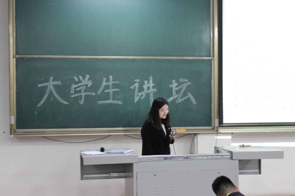 在本次大学生讲坛活动中,我院马丽同学的精彩演讲使同学们对大学和人生有了更明确的目标,提高了同学们的学术与人文素养,极大带动了我院积极向上的学习气氛,对创建校园特色文化活动品牌起到了极大的推动作用。