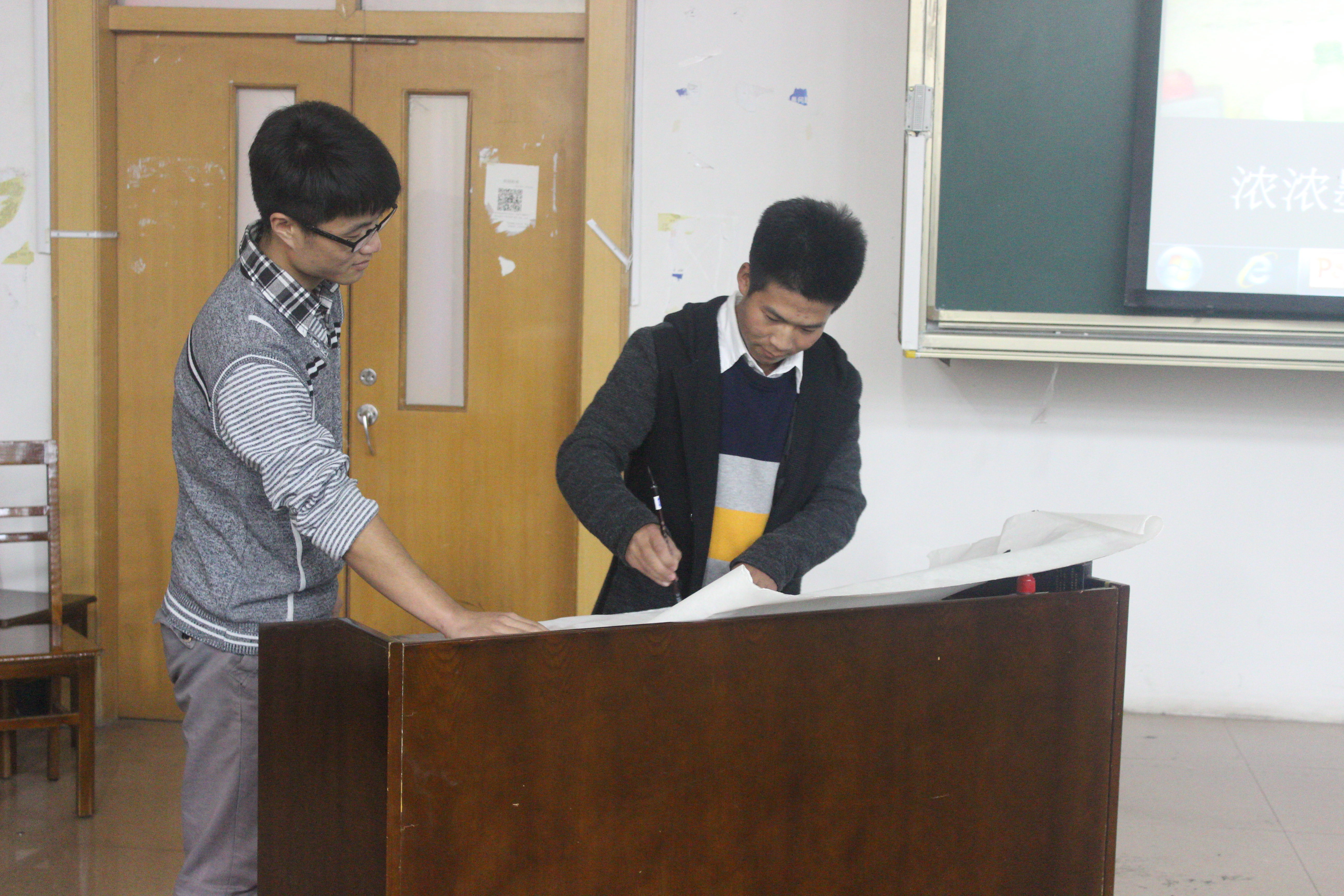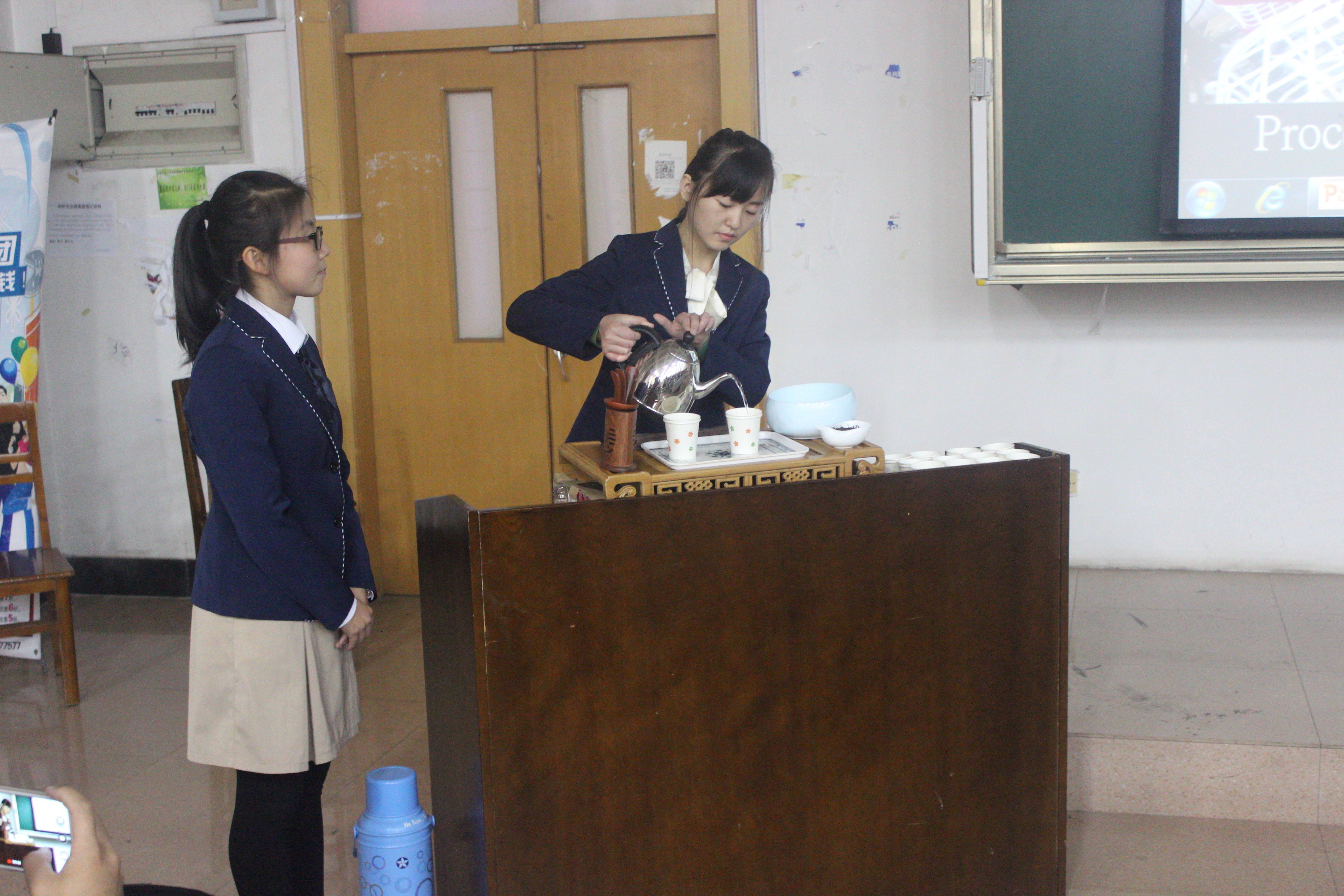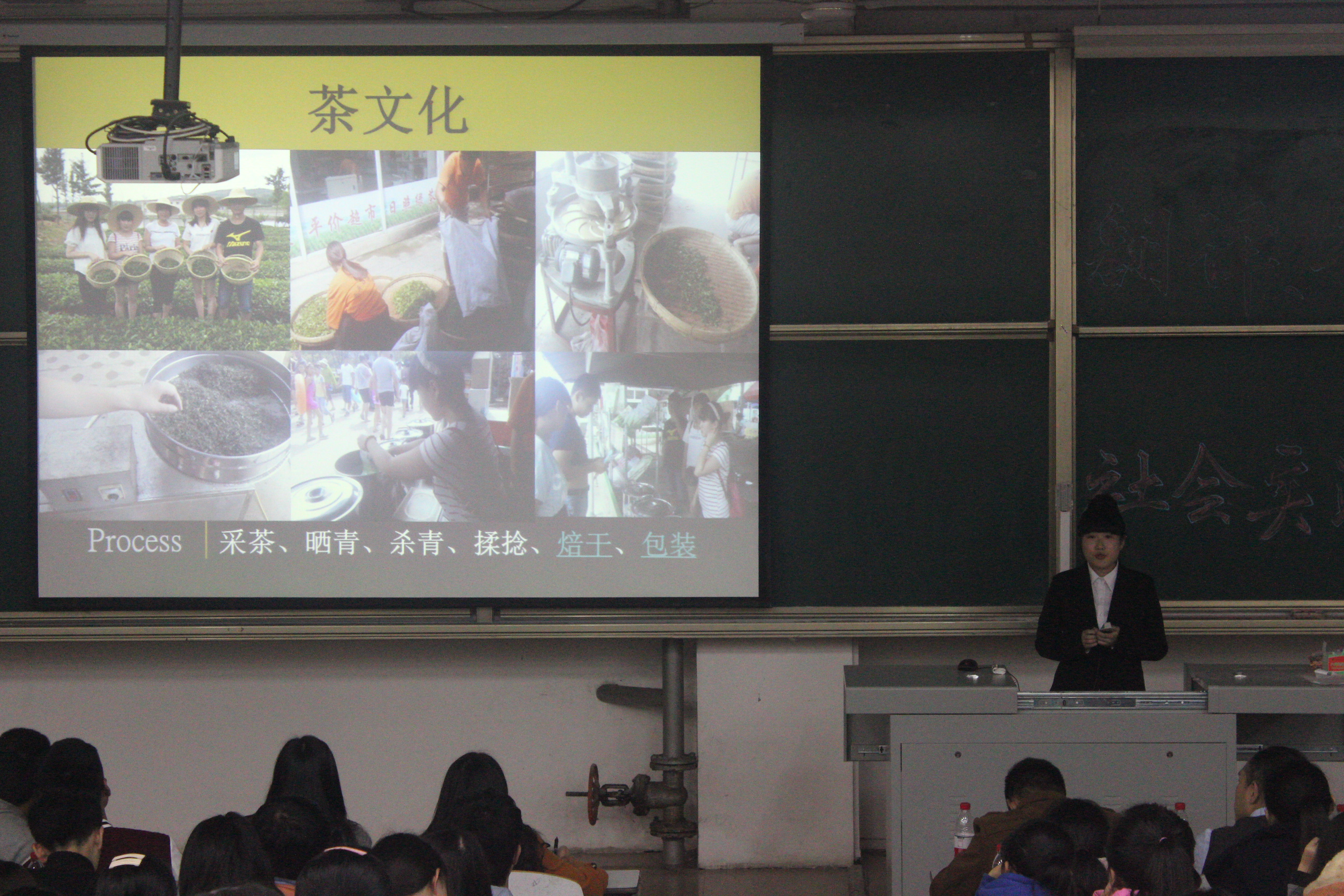 “译&典”团队进行成果展示。他们分别以朗诵、茶艺表演、即兴书法展示的形式向大家展示了他们以茶、书法及戏曲为切入点,对中国传统文化的实践调查成果,在欢笑与掌声中,让大家对我国传统文化有了更为深入地了解。展示中穿插了听曲猜戏名等互动环节,更是将活动的气氛推向了一个个高潮。随着最后一个展示项目的结束,活动在大家的掌声中落下了帷幕。