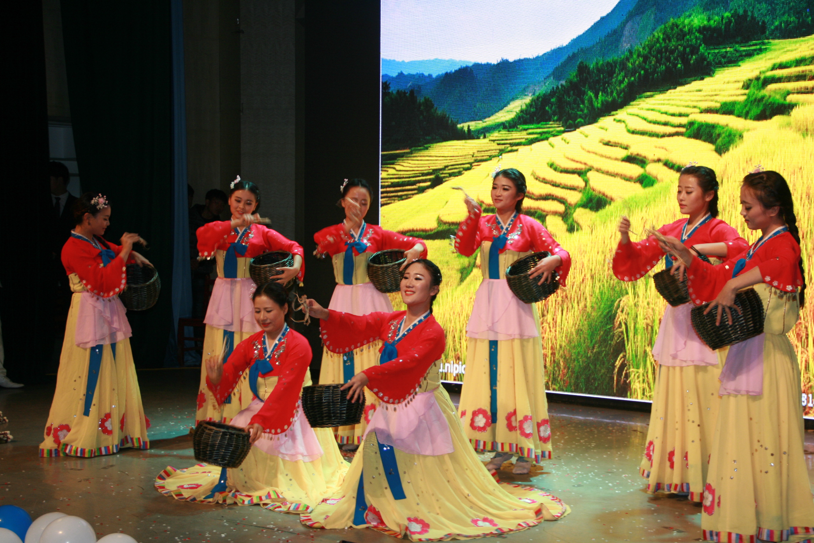 当晚的表演精彩纷呈热闹非凡,既有活力四射的歌舞,又有令人大开眼界的魔术表演。主持人的汉韩双语主持充分体现了韩语特色,卢正爱教授携韩语系学生表演的朝鲜古典舞与留学生演唱的阿里郎更是充满了浓浓的朝鲜风情。诙谐幽默的话剧表演使观众席不时发出欢乐的笑声。随后帅气的双截棍表演更是将整个晚会的气氛推向高潮,获得了观众的热烈掌声。晚会最后以舞蹈串烧为结尾圆满落下帷幕。