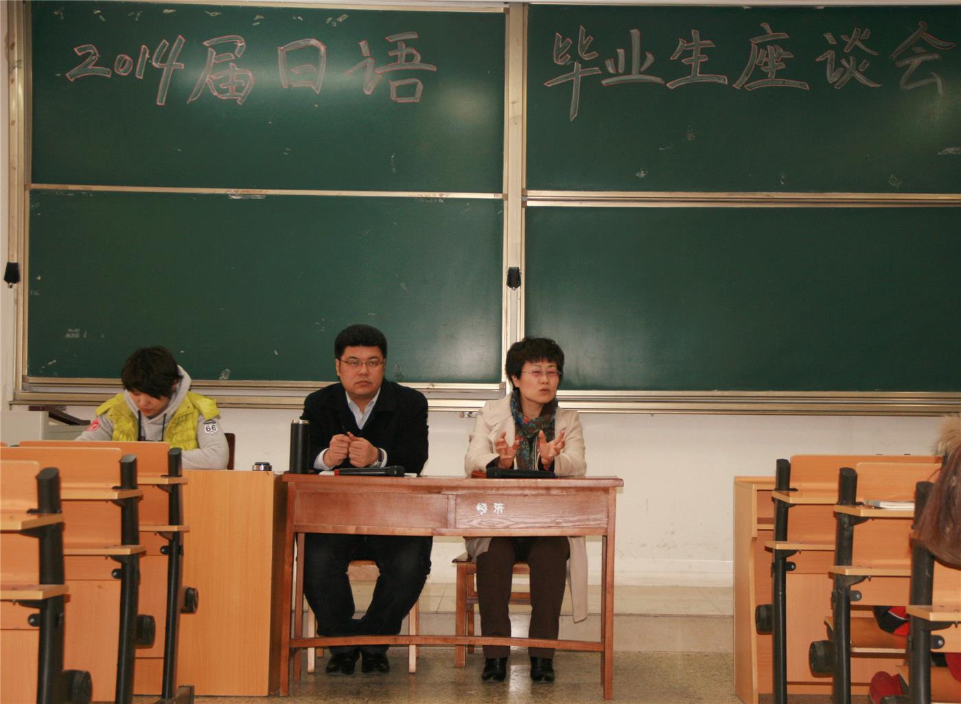 党总支副书记姚圆鑫,阎萍副教授和李凯老师。会议伊始,阎萍副教授简要介绍了此次会议的目的并与大家探讨了2014届日语系毕业生的毕业论文问题。随后,姚圆鑫书记就考研与就业问题对毕业生们进行了讲解。姚书记提出“金三银四”的观点,即三月和四月是应届毕业生寻找工作的最佳时期。其次,姚书记通过对历年来全国各地企业对日语毕业生的需求数据提议应届毕业生应该多往省外投简历以更好地缓解就业压力;同时,在简历的制作方面,姚书记表示要做好一份好的简历首先要简洁明了,懂得企业需要的是什么并且予以展现。最后,姚书记依据个人经验在应聘者的衣着、态度、行为、就业和择业的选择等方面给出了自己的建议,鼓励应届毕业生遇到问题及时联系自己予以讲解,并且表达了自己对毕业生们的衷心祝愿。此次会议,对应届毕业生的成功就业和当前就业思想动向产生了深远影响,使正确的就业观牢牢扎根于毕业生心中,在实现毕业生的人生价值观等方面创造了更多的可能。