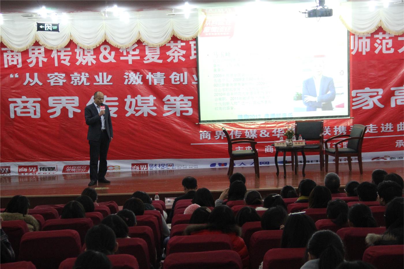 承办的“从容就业•激情创业”商界传媒第八届全国高校巡讲活动在日照校区隆重举行。永和集团董事长林炳生,华夏茶联董事长马玉峰,日照团市委学少权益部部长于涛,以及我校机关党总支书记、学生工作办公室主任孔令军,篮球直播吧