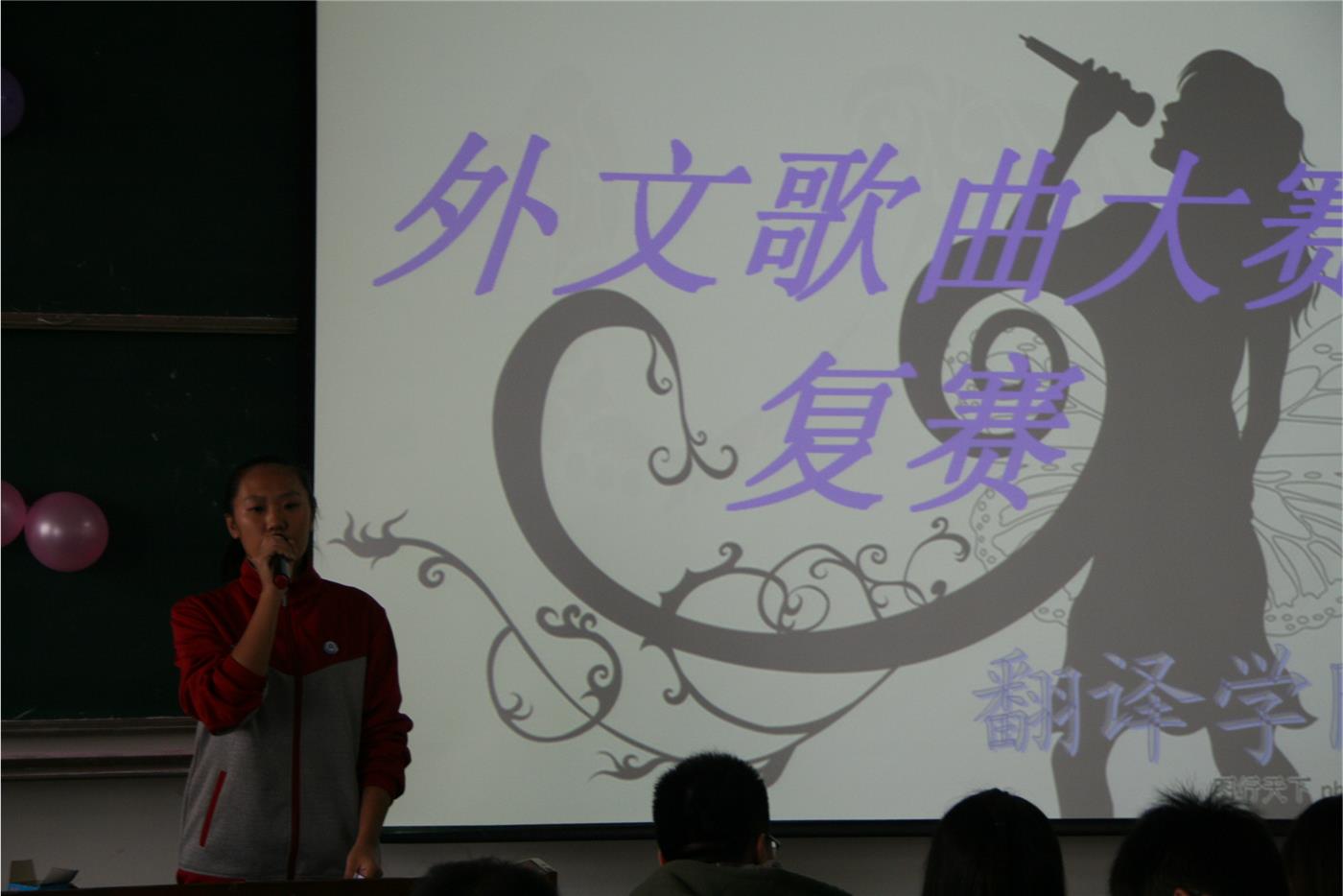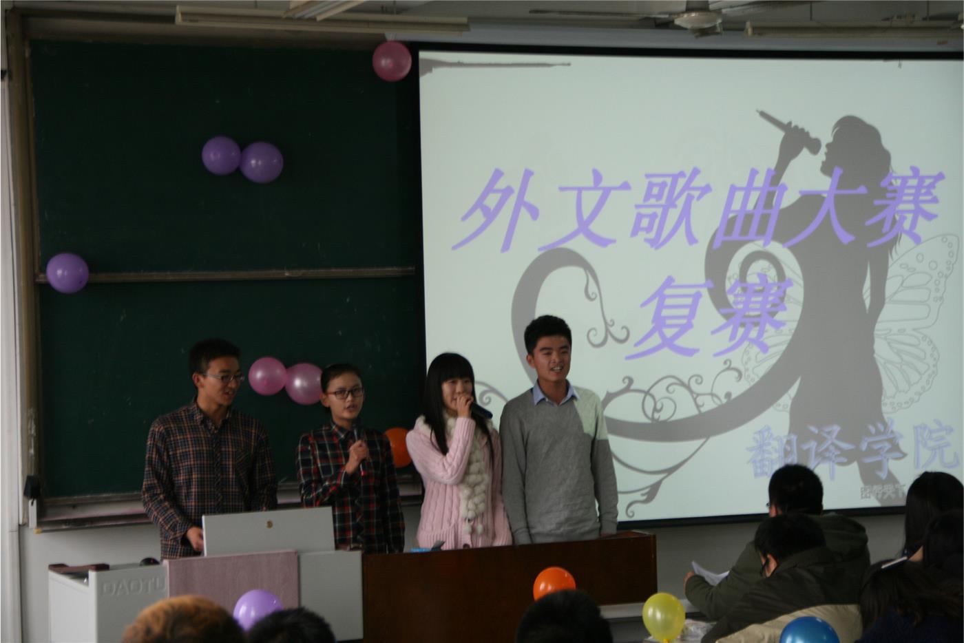 之间的交流,增强了同学们的自信。通过歌声,同学们不仅表现出了对外语学习的热情,提高了外语运用的能力,同时也体现出对生活的热爱,对青春的歌颂!