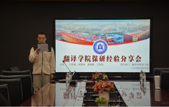 会上,推免生代表结合自身保研经历介绍了推免流程和申请条件,为同学们提供了多种保研信息获取途径,鼓励大家保持积极的心态,停止焦虑和内耗。日语专业和朝鲜语专业的推免生就小语种专业保研情况、研究方向和竞赛经验进行分享,鼓励大家积极参加相关竞赛和社会实践。