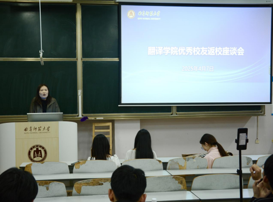 团委书记胡芳敏主持,2023届日语专业优秀校友李紫璇分享就业经验,2023级本科生积极参与。