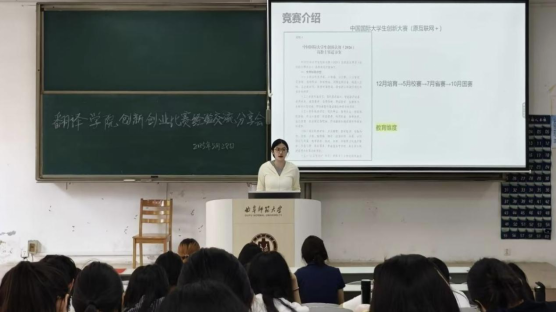 举办中国国际大学生创新大赛经验交流分享会。会议由我院第十二届团委及学生会创新创业部副部长刘晋彤主持,特邀国家级获奖者王滋润分享参赛经验,2023级、2024级学生积极参会。