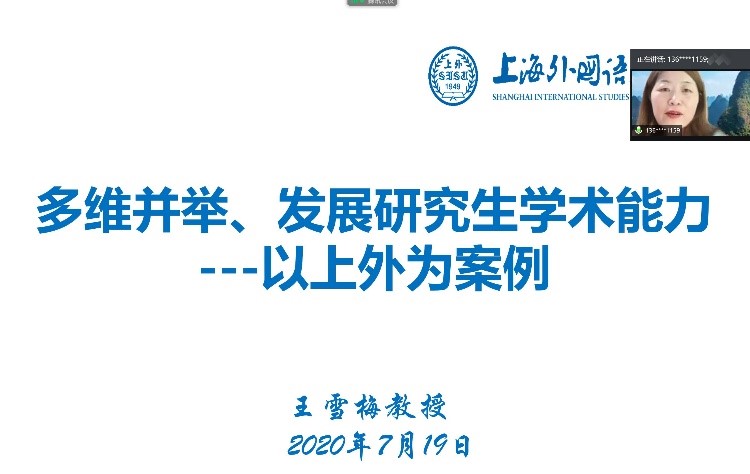 特邀我校杰出校友、上海外国语大学博士生导师王雪梅教授为全体研究生导师做线上培训。王教授以“多维并举、发展研究生学术能力——以上外为案例”为题,阐释了外语研究生学术能力内涵与理论发展,以及导师与外语研究生的关系,并以上海外国语大学为例,介绍了上外在研究生培养工作中的理念与举措。她指出,培养研究生学术能力,应当严抓招生制度、过程管理、导师职责、质量监控、学术环境等多个环节。导师是研究生培养的第一责任人,既要为学生提供良好的学术环境,加强学术指导和实践指导,还要加强思想方面的沟通交流,实现全方位育人。此次培训使篮球直播吧