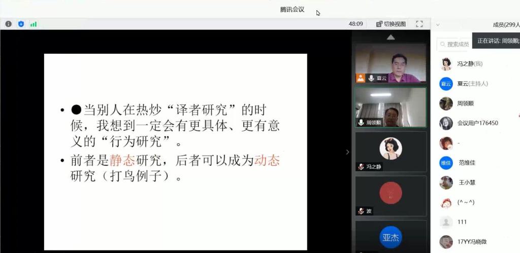 本次特殊形式的线上学术报告会践行了“停课不停学”的理念,拓展了师生们的学术视野,有利于同学们学习、掌握翻译研究的方法、提高学术兴趣,进而有利于我院更好地培养高素质翻译人才。