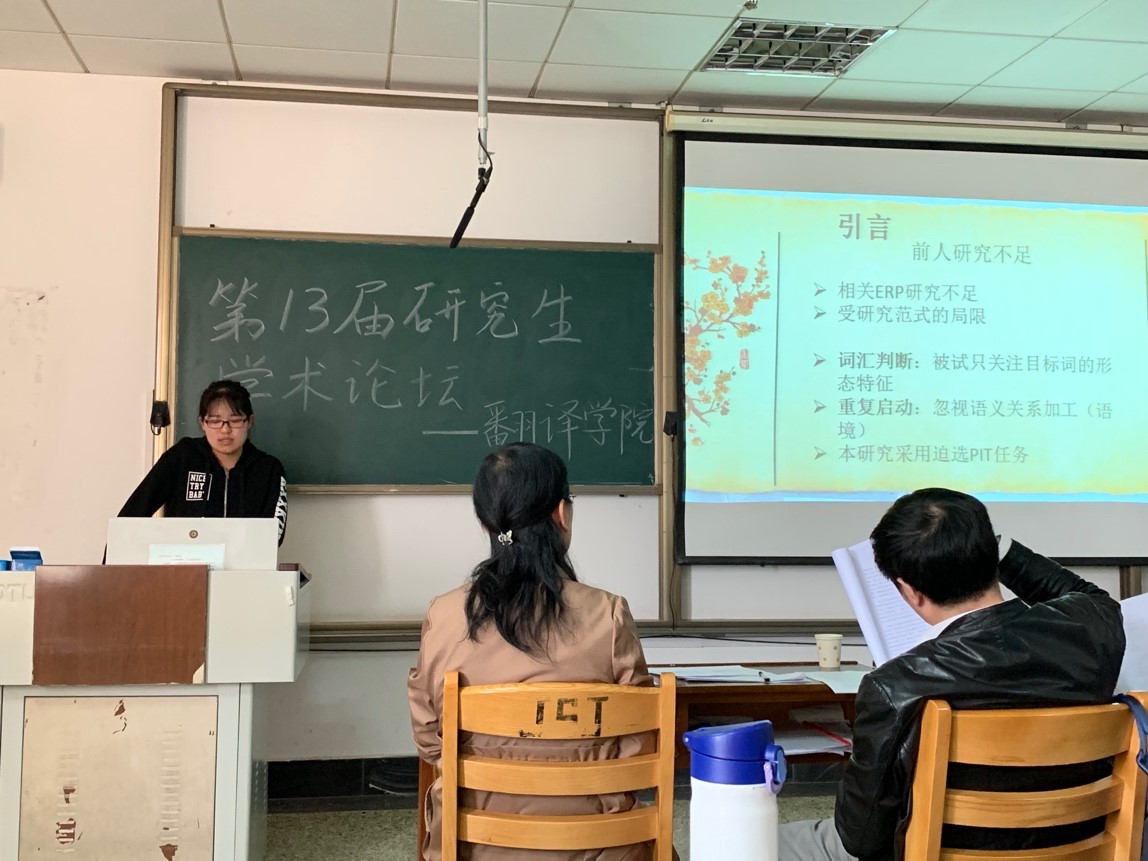 本次论坛涵盖了英语语言文学和亚非语言文学两个专业,共7位研究生依次对自己的研究成果进行了精彩的阐述和展示,选题涉及神经语言学、语料库语言学、认知语言学、心理语言学、翻译研究等专业领域。评委们分别针对同学们研究中存在的问题进行了专业的点评,从选题意义、研究方法、写作思路、学术规范等方面提出了针对性的建议,并与同学们进行了深入的互动讨论。