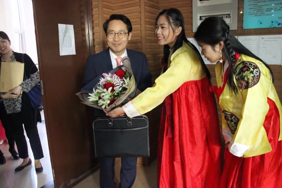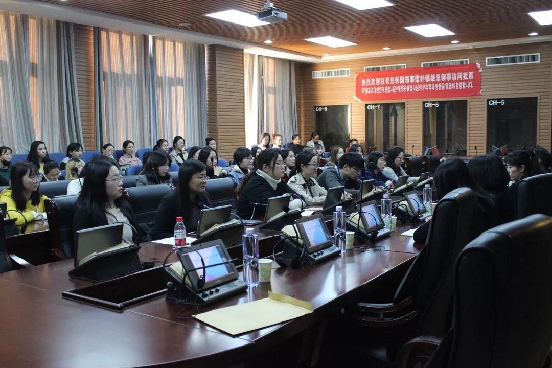 卢卫中院长、韩语系金东国主任也参加了此次座谈。15:30,朴总领事于s329开展关于韩国文化介绍的学术讲座活动,讲座由韩语系主任金东国教授主持,驻青岛韩国领事馆研究员李银英、日照市人民政府外事侨务办公室领导、我校国际交流合作处相关负责人以及韩语系全体老师出席本次活动。