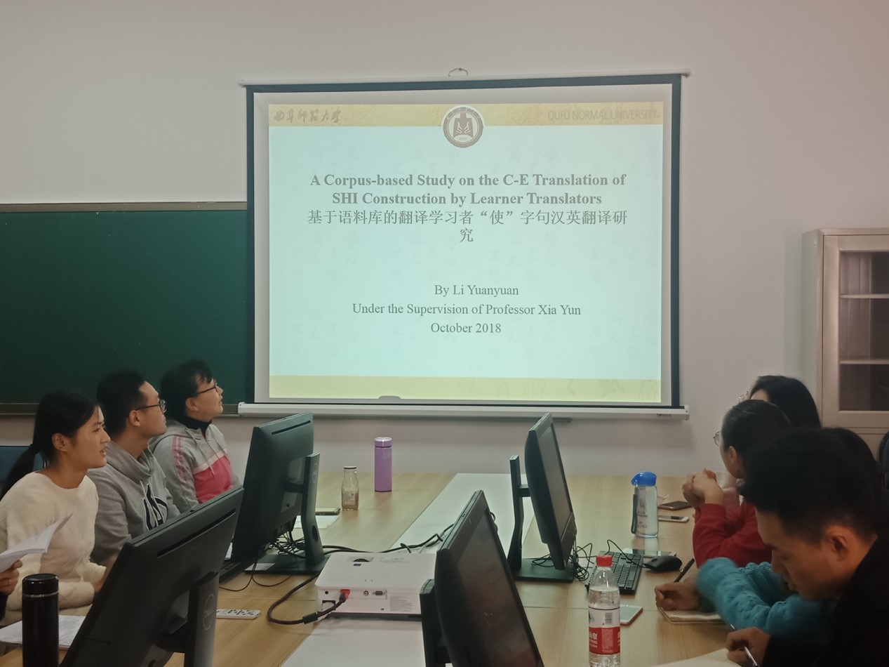 于11月2日下午2点半在S308成功举办了本年度研究生第一期学术沙龙。博士生导师周统权教授,夏云教授,王海燕副教授及2018级全体英语语言文学硕士研究生参加了本次学术活动,会议由学术部长韩雪主持,2016级外国语言文学硕士研究生李园园和高晨为大家做了两场精彩的学术汇报。