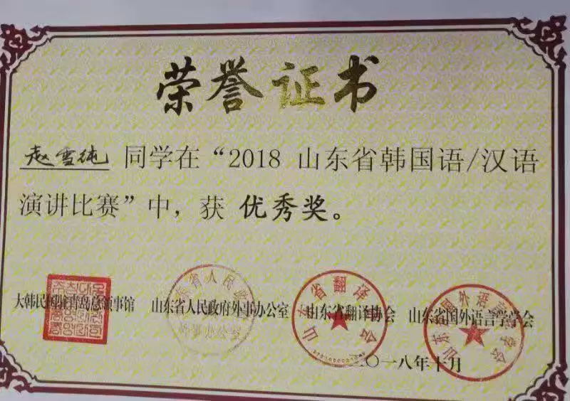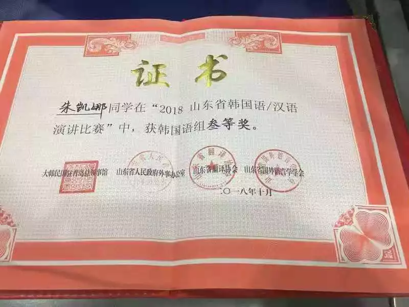 我校选手参加2018山东省韩国语汉语演讲比赛取得优异成绩