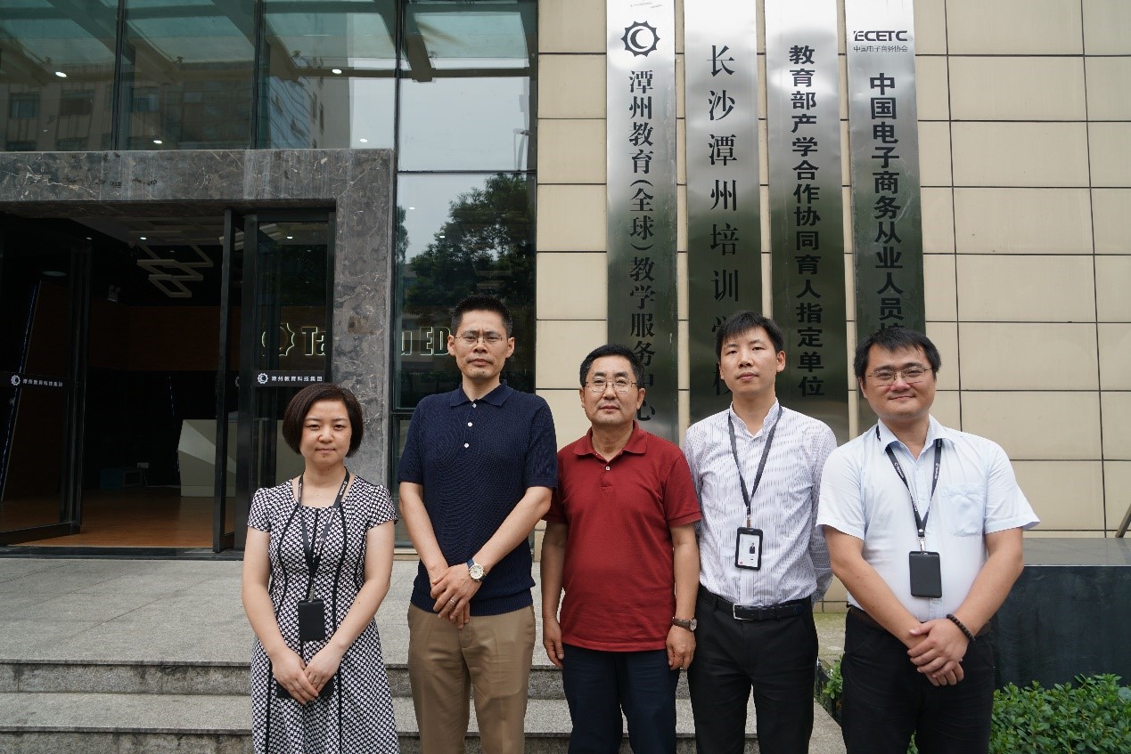 副院长宋晓凯博士与韩语系主任金东国博士一行来到湖南长沙潭州教育集团进行访问。在谭州教育集团彭亮、田志鹏先生的陪同下,走进潭州教育大厦的潭州教育(全球)教学服务中心进行了重点考察,详细了解了公司的内部组织架构和教育产品情况,并就所关心的实习基地建设等相关事宜进行了深入探讨。在交流过程中,潭州教育集团负责人对我院毕业生给予了高度的评价,指出我院毕业生专业知识扎实、综合能力强,踏实肯干,表示非常希望能与我院在人才联合培养、专业实习、实训等方面进行深度合作。