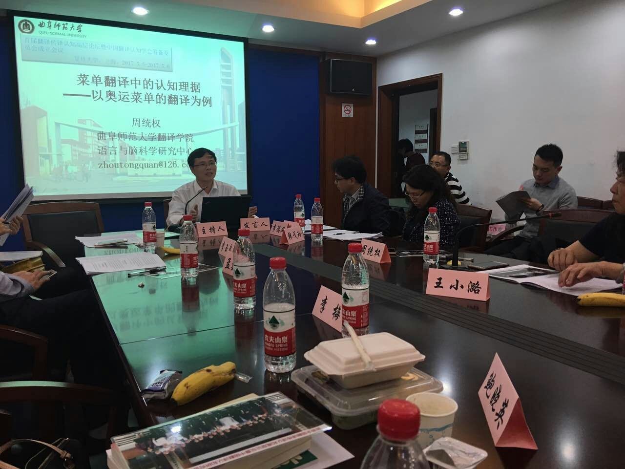 5月6日,首届全国翻译传译认知高层论坛暨中国翻译认知研究会委员会成立大会在上海复旦大学外文篮球直播吧 召开,来自全国部分高校和研究院的专家和学者20多人共同探讨了中国文化“走出去”和“一带一路”倡议下中国翻译、传译、认知等领域理论与实践的最新国内外研究成果和前沿展望。我院的周统权教授应邀出席会议并当选为“中国翻译认知研究会常务理事”,他的会议报告“菜单翻译中的认知理据:以奥运菜单的翻译为例”引起了与会者的热烈讨论,展示了曲阜师范大学翻译人的风采。