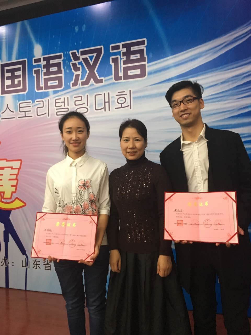韩语系2013级本科生赵雪纯以及2016级研究生贺龙飞经过激烈角逐,在本次大赛中荣获优秀奖。