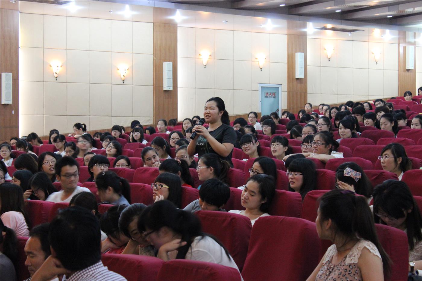 兼职教授聘任仪式结束后,王立非教授做了题为“商务英语专业的能力、知识和素质要求:解读国家标准”的学术报告会。报告会由卢卫中院长主持。报告会分为“商务英语专业发展现状”、“标准要求”、“建设思路”三个方面的内容。王教授从上海自贸区的发展谈起,提出我国已拉开第三次产业结构调整的序幕,这必将为商务外语人才的需求打开一个广阔的市场。王教授指出:在全国已有216所高校开设了商务英语专业,商务英语专业已覆盖了全国所有类型和层次的高校,在广阔的市场机遇面前,商务英语专业也面临着严峻的挑战。王教授针对商务英语与普通英语的差别,指出商务英语专业本科阶段所应具有的“三个五”,即五种素质要求(思想素质、文化素质、专业素质、职业素质、身心素质)、五种能力(语言运用能力、跨文化交际能力、思辨与创新能力、商务实践能力、自主学习能力)和五种知识(语言知识、商务知识、跨文化知识、人文社科知识、跨学科知识)。在深入分析了商务英语专业的内涵与建设要求后,王教授对我院商务英语专业的建设思路提出了积极的建设性建议。报告结束后,王教授与同学们进行了热烈的互动交流,回答了同学们关心的各方面问题。