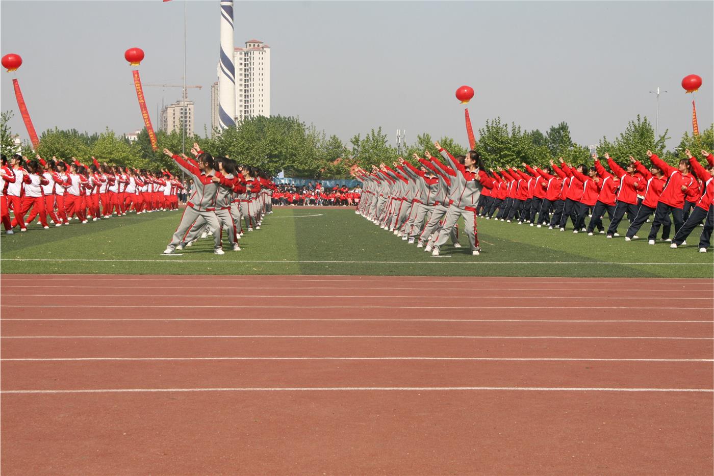 学生方阵进行了广播体操表演。坚定的目光、整齐的动作成为开幕式上一道绚丽的风景线,展示了他们青春的风采和万丈的豪情。至此,运动会进入了为期两天的比赛进程。