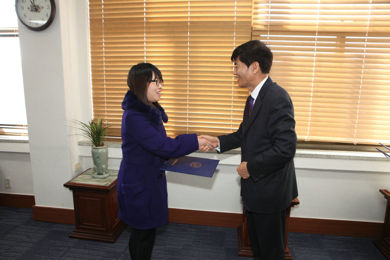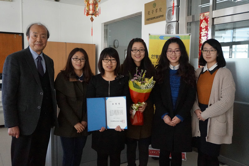 中方院长潘丽丽在安东大学年度表彰大会上荣获功劳奖,由安东大学校长郑亨镇亲自授予获奖证书。据悉,此奖项是从2009年起为表彰在教育教学领域和学术研究领域做出杰出贡献的安东大学教师而设立的。