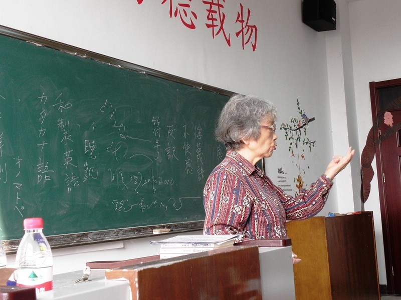 在报告中,池田老师先是为大家讲述了相同读音的单词不同的速记方法,以实际例子为学生讲述了自己独特的记忆方法。同时告诫学生,在电脑打字时要注意区别同音异形词。与此同时,池田老师用诙谐幽默的言语和肢体动作穿插着讲述了“差别类用语”,以及在与人交往时需要注意的措辞。其后,老师又用带领我们感受了日本独特的“拟声词和拟态词”文化,大家在欢声笑语中增长了知识,加深了对日本这个国度的理解。最后,池田老师现场向我们展示了独特的速记方法,80岁高龄的池田老师现场的速记演示丝毫不差,在场师生看得目瞪口呆,掌声不断。最后,报告在学生与池田老师的问题互动中结束。