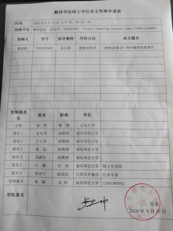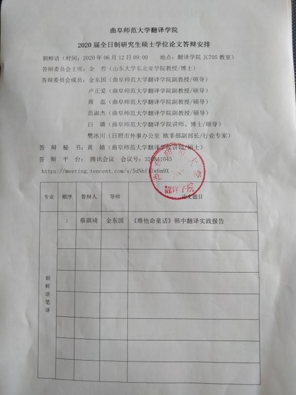篮球直播吧 2020届全日制研究生硕士学位论文答辩安排5