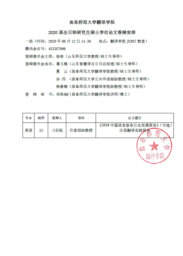 篮球直播吧 2020届全日制研究生硕士学位论文答辩安排6