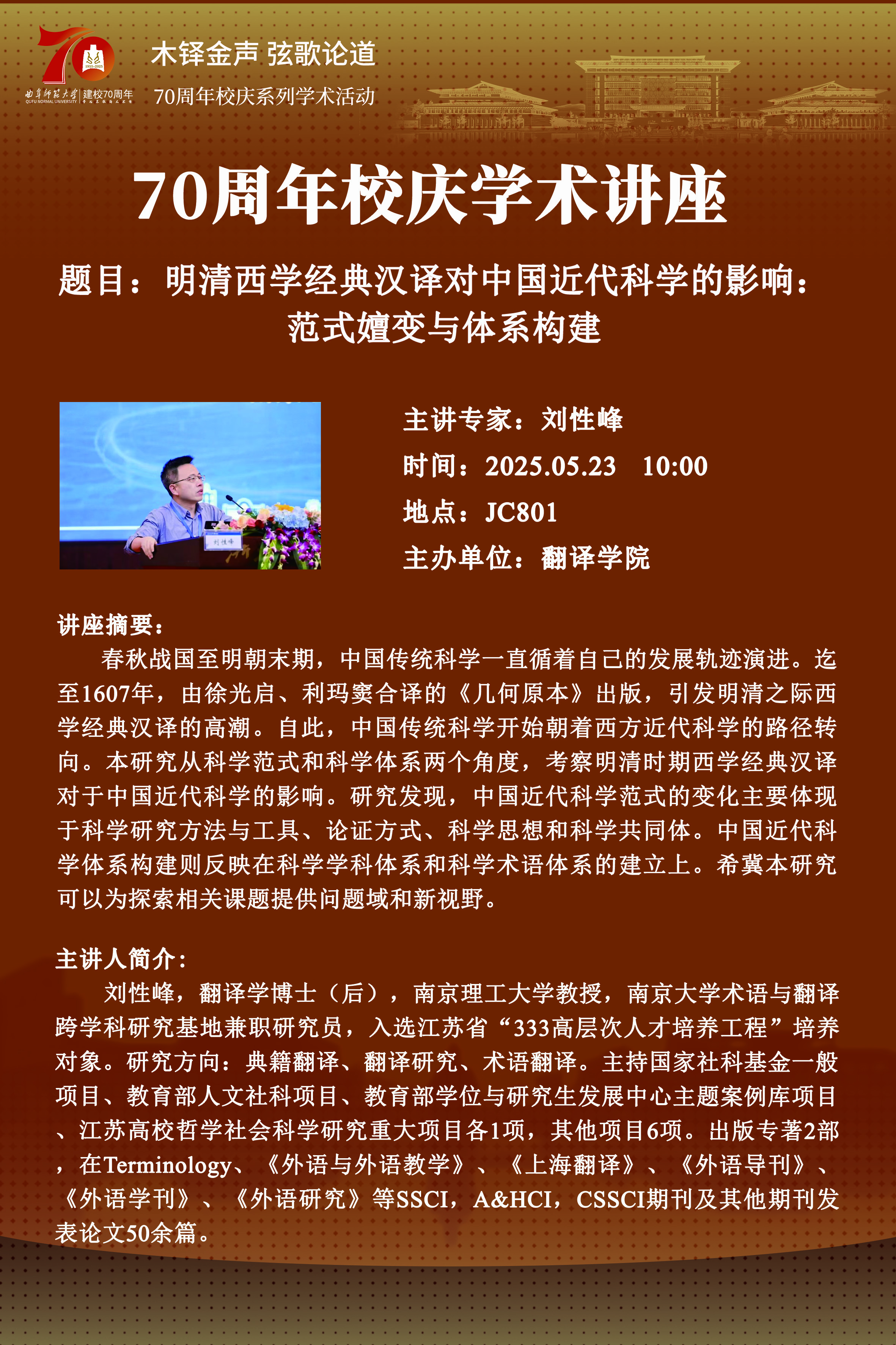 刘性峰教授专家讲座:明清西学经典汉译对中国近代科学的影响:范式嬗变与体系构建